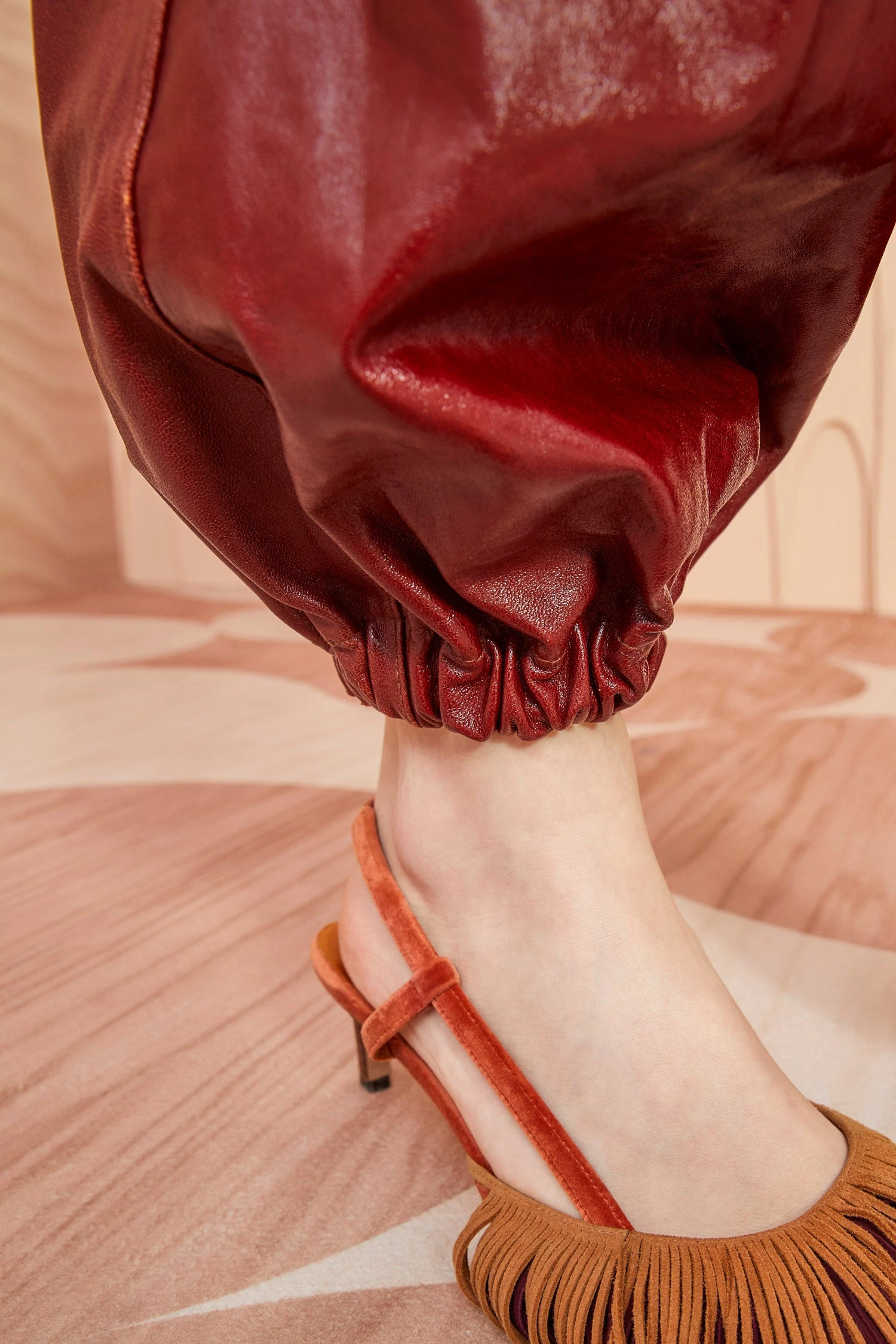 As featured in Look 6 of our Autumn/Winter ’23 Runway Show, the Cyrus Pant is made from lustrous waxed leather in an opulent shade of mahogany. Designed with a buffed sheen and subtly crackled texture, these pants are made for forever-wear. They feature a pleated bandless waistband, side-seam pockets, and elastic cuffs.